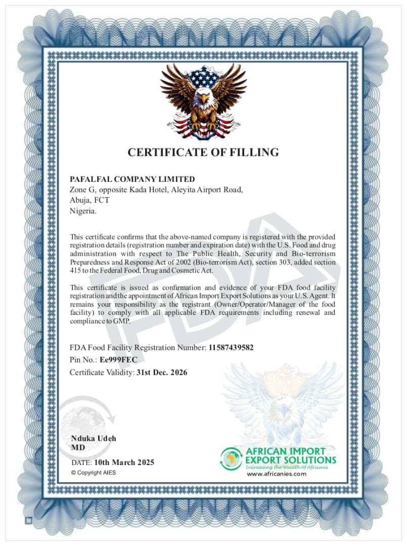 We follow recognised quality checks and hygienic handling standards. Export documentation, NAFDAC certification, and applicable compliance documents are provided on request.